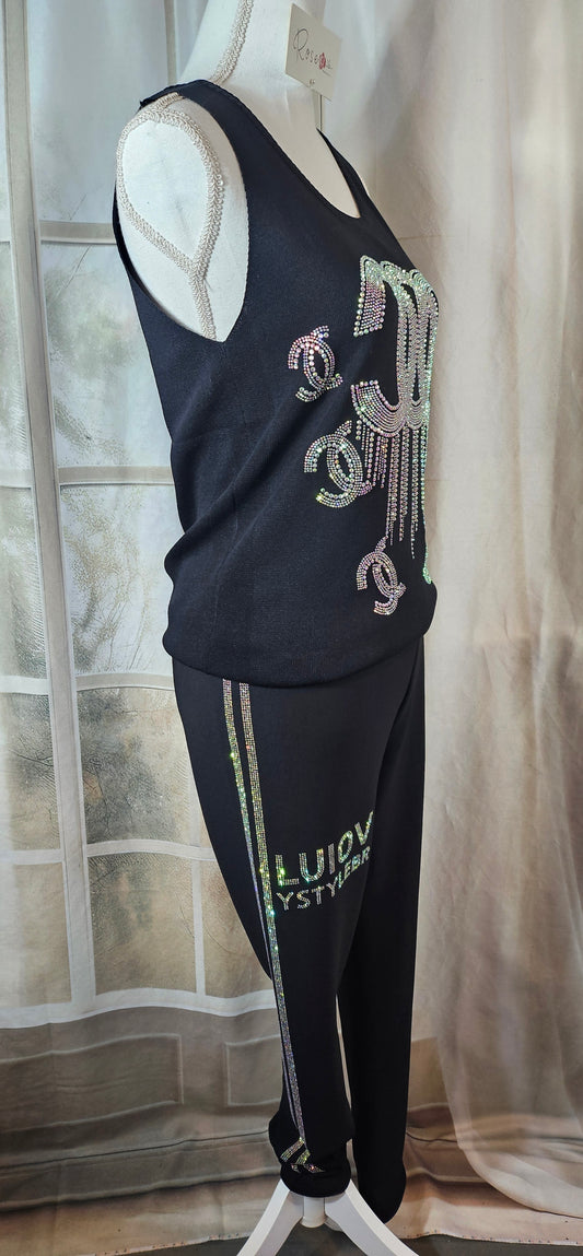 Shiny-Stretchhose, grau mit Skull, Grösse 42/44 von ISSIMA