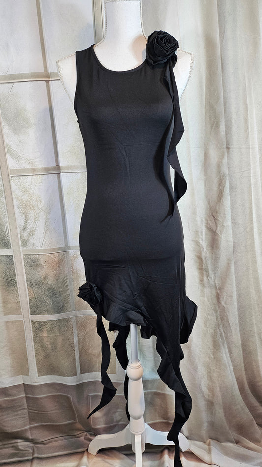 Stretchkleid schwarz und asymethrisch mit Rose bis Grösse 40 von ROSE