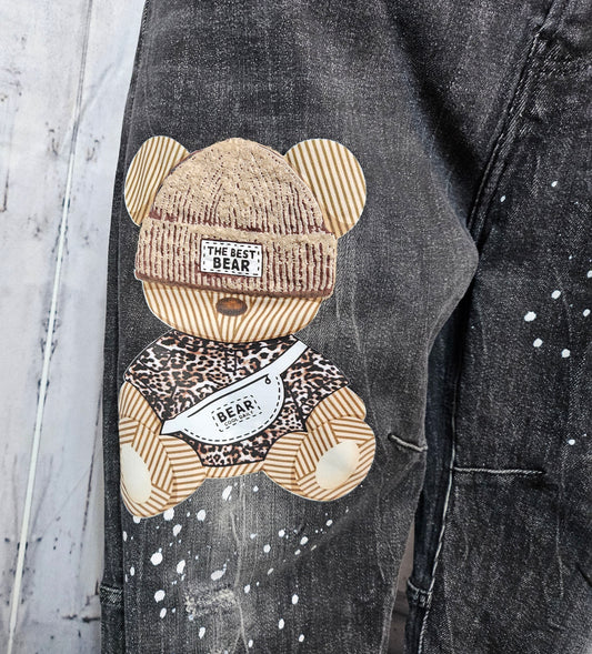 Stretchjeans schwarz mit Bär, Gr. S, M &XL