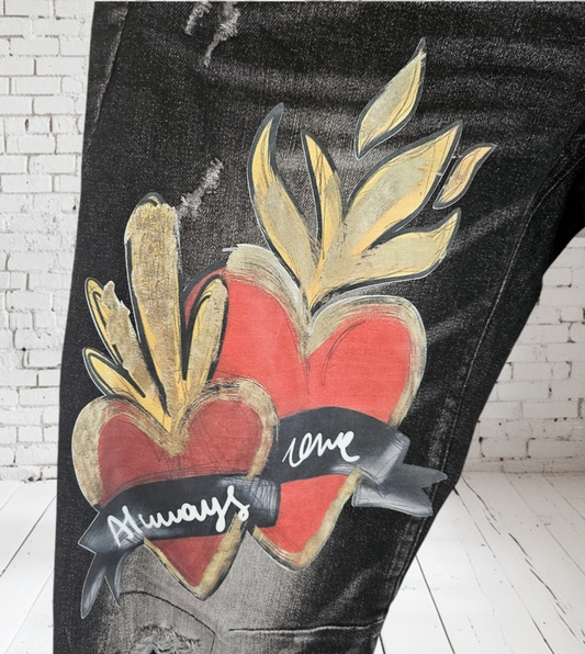 Stretchjeans "Always love" schwarz, Grösse S - XL