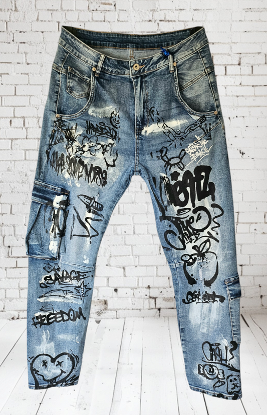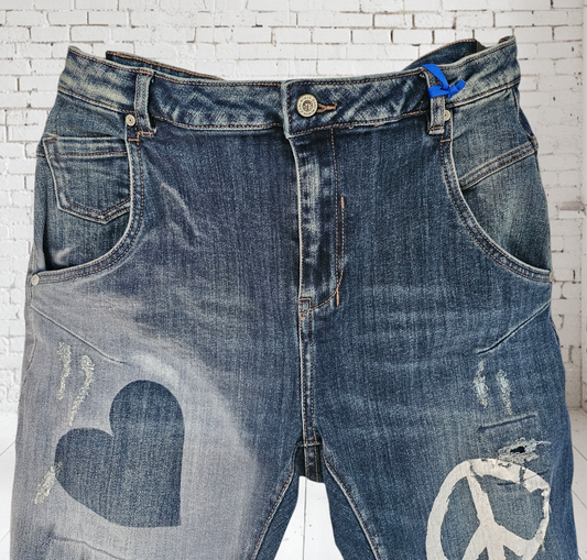 Stretchjeans "LOVE & PEACE" blau, Grösse XL