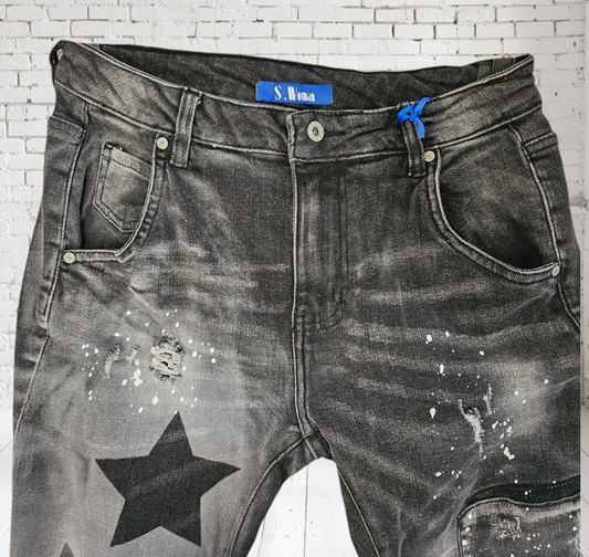 Stretchjeans "STARS" schwarz, Grösse S, M, L, XL