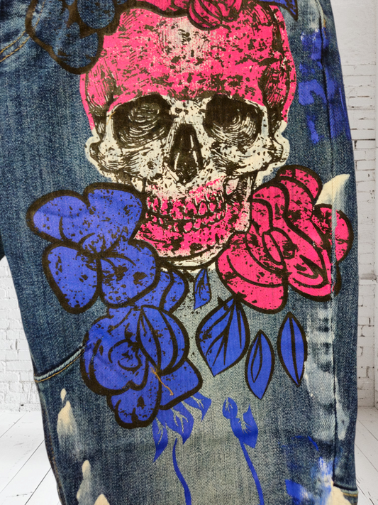 Stretchjeans "SKULL" blau, Grösse S, M, XL