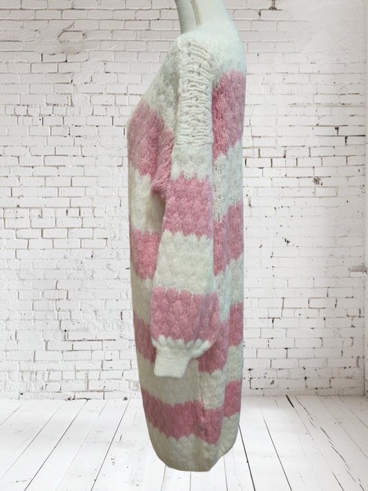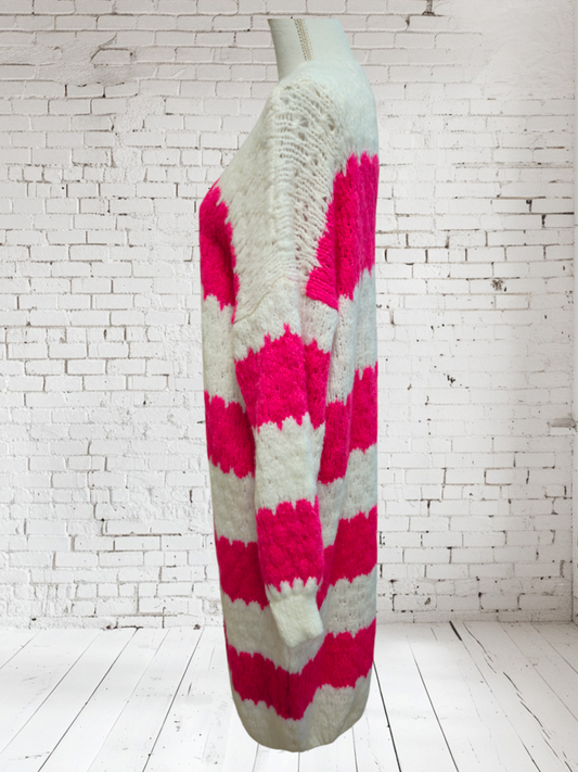 AusverkauftStrickjacke lang pink-weiss, Onesize bis 42