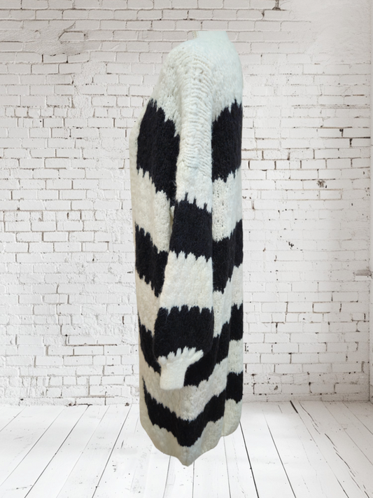 AusverkauftStrickjacke lang schwarz-weiss, Onesize bis 42
