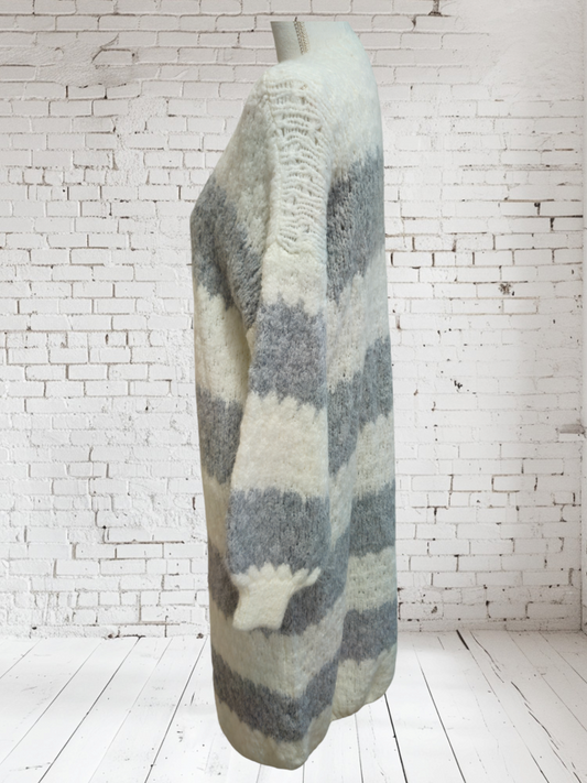 AusverkauftStrickjacke lang grau-weiss, Onesize bis 42