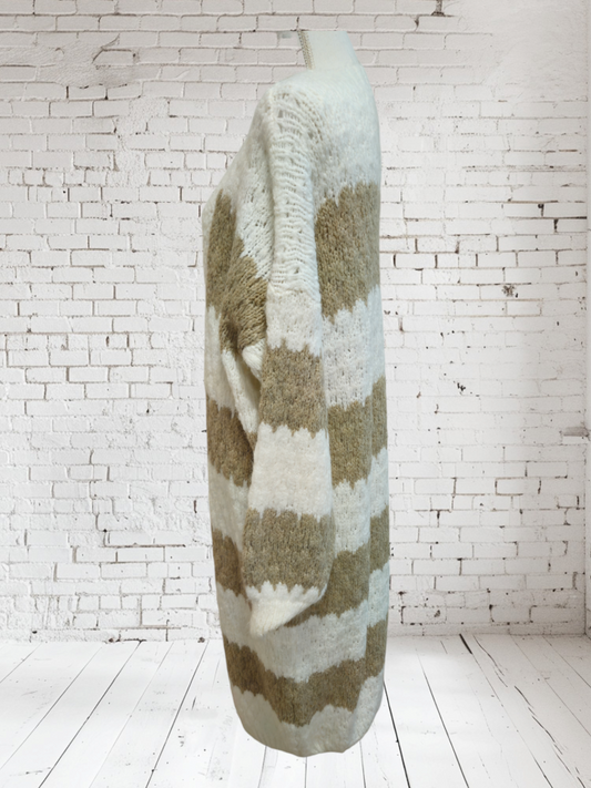 AusverkauftStrickjacke lang schlamm-weiss, Onesize bis 42