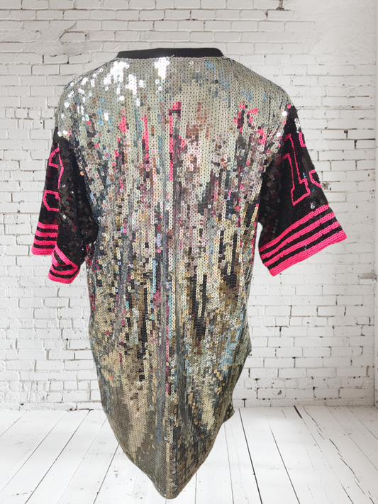 Pailletten-Shirt "13", silber-schwarz-pink, Grösse 38 - 42/44